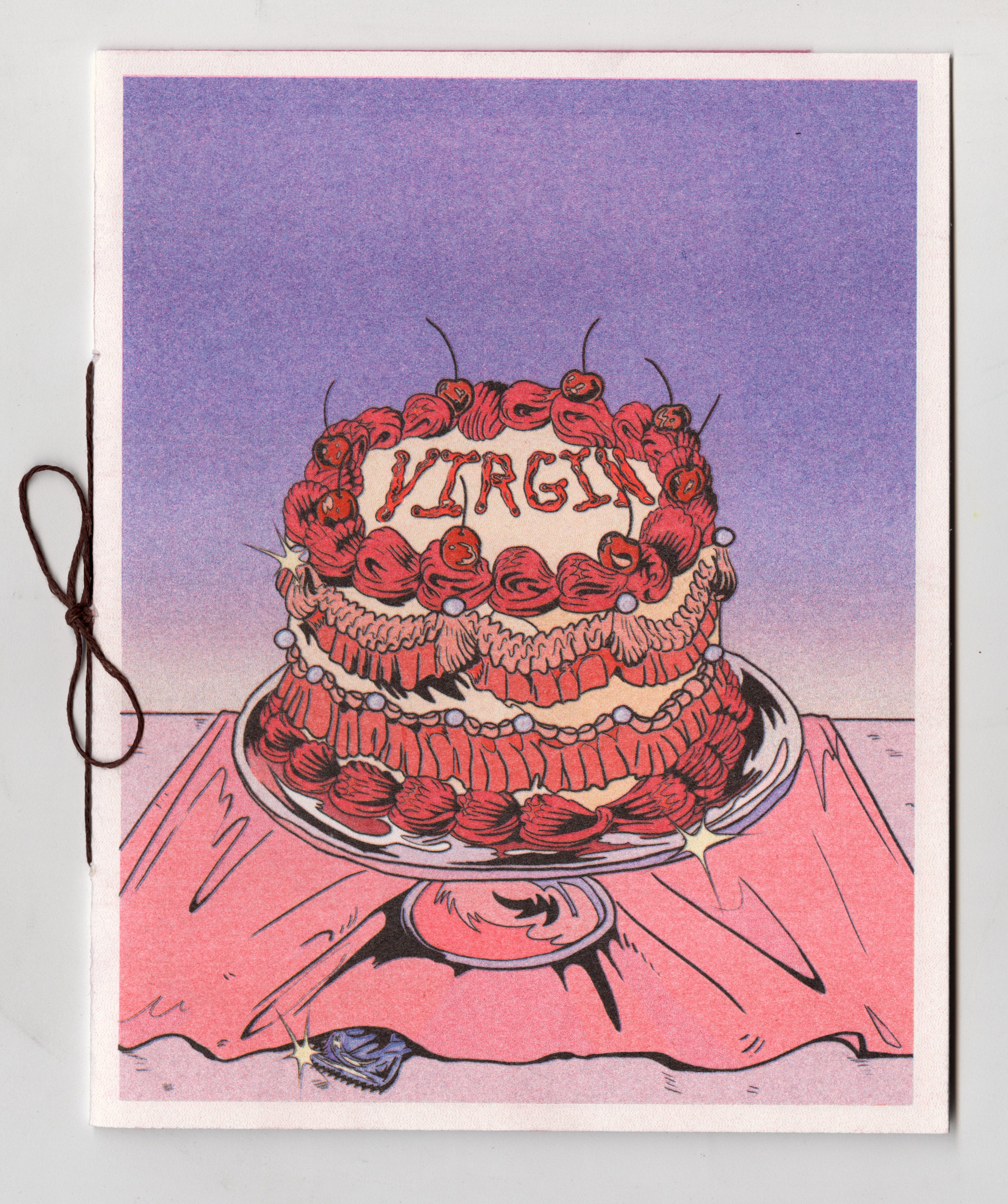 Virgin is a self-published Risograph zine that celebrates women’s sexual journey and sexuality, reclaiming pleasure for themselves within the means that they define their pleasure. And touching upon common struggles that happen with the misconceptions of sex. This zine was drawn in response and reflection of my own virgin party and to hold space and bring celebration